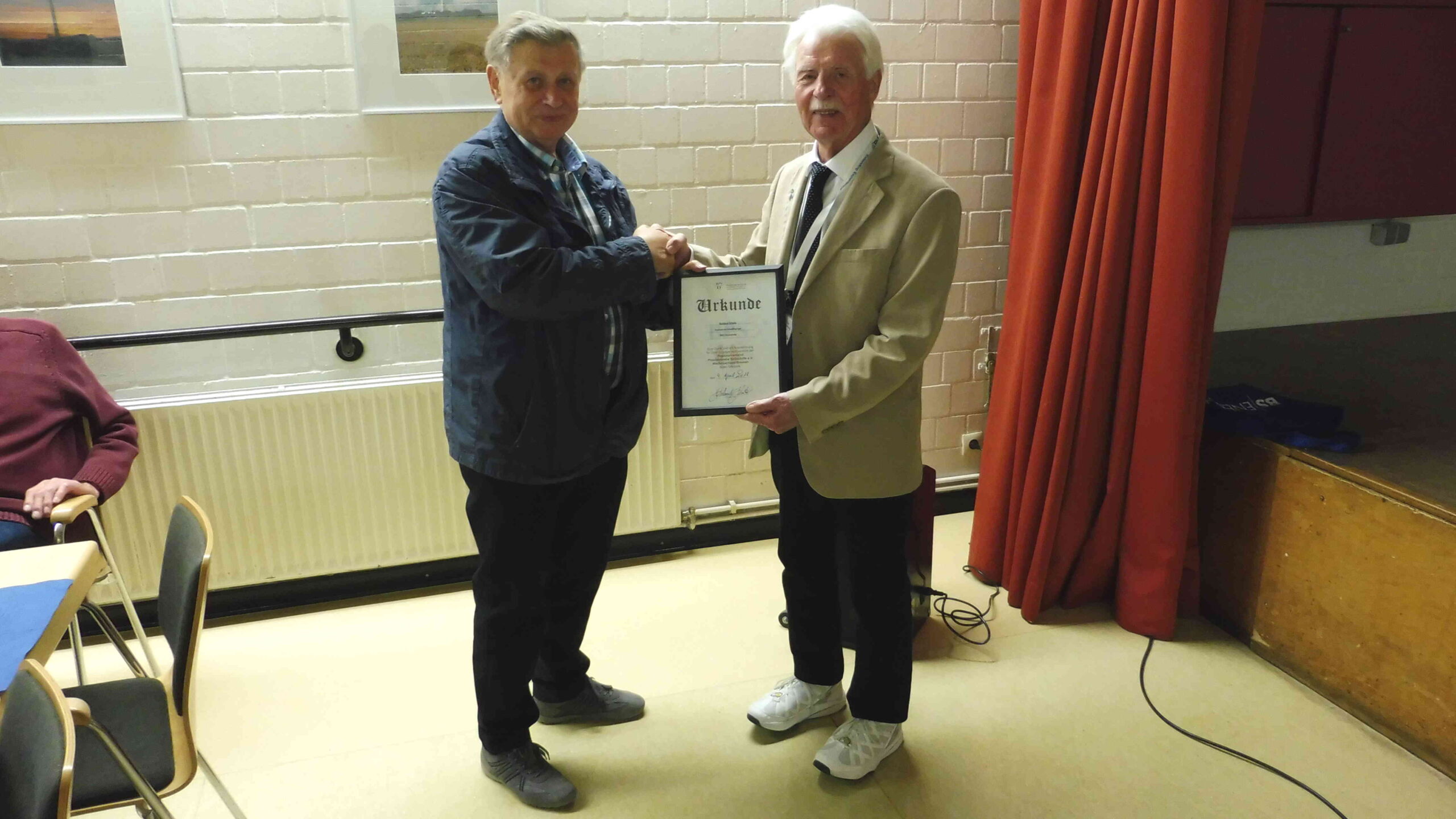 Überreichung einer Urkunde durch Lothar Anlauf vom Regionalverband Prostatakrebs Selbsthilfe Niedersachsen / Bremen e.V.